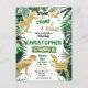 Ready for a cool dinosaur theme birthday party? This design features a watercolor of colourful dinosaurs, wild greenery, watercolor details, and gold dinosaur silhouettes with stomping feet, with modern "Born to be wild" and "Stomp, chomp & roar" typography. All text is editable on this birthday budget-friendly postcard! This design is for any age, gender-neutral, for 1st and 2nd birthdays, and older kids. Find matching items in my shop.