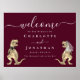 Dinosaur Theme Burgundy Wine Wedding Welcome Poster