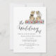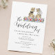 If you and your fiancé love dinosaurs here’s a fun dinosaur theme wedding invitation with dinosaur bride and groom standing in a colourful watercolor wildflower meadow. Easy to personalise with the bride and grooms names, wedding date and all the details. Funny T-Rex bride and groom dino illustrations with modern whimsical typography script. Unique original artwork by artist Catherine Sweetman