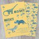 Time for a wild birthday party! A fun bunch of adorable dinosaurs on a yellow background, ready to customise with your child's name, age and party details.