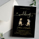 Designed with a stylish black and gold foil colour palette, this invitation blends elegant modern gold foil script with adorable dinosaur artwork to create a lighthearted yet sophisticated vibe. Ideal for destination weddings like museums and Jurassic beach locations, non-traditional weddings, fun-loving couples, or dino-themed celebrations