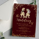 Fun Dinosaur Wedding Invitation burgundy wine red and Gold Foil Eucalyptus Design