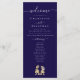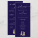 Dinosaur Wedding ceremony navy blue Program card, elegant modern white script and funny T-Rex Bride & Groom on a elegant navy blue background.