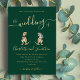 Funny Dinosaur Wedding gold foil Invitation T-Rex Bride & Groom dinos on Rich Dark green background
