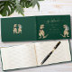 If you and your partner love dinosaurs, this roarsome dinosaur wedding guest book is the perfect way to capture memories from your big day! Featuring a whimsical T-Rex bride and groom dino illustrations on a rich dark green background, this unique Jurassic-themed guest book adds prehistoric fun and personal style to your wedding celebration.