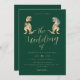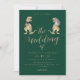 Funny dinosaur wedding dark green invitation featuring a T-Rex bride and groom