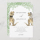 This fun Dinosaur-Themed Wedding Invitation is a playful yet stylish choice for couples who share a love for dinosaurs and want to infuse some humour into their wedding stationery. Featuring a whimsical watercolor illustration of a T-Rex dinosaur bride and groom, adorned with delicate eucalyptus greenery, the design blends botanical elegance with lighthearted charm. The modern script adds a contemporary touch, ensuring the invitation remains chic while showcasing the couple's unique personality. The easy-to-use templates make personalisation effortless, allowing you to customise the details in stylish typography to suit your wedding theme. Created by artist Catherine Sweetman, this original artwork captures the fun, quirky vibe of a dinosaur-loving couple while maintaining an elegant and refined botanical feel. Perfect for couples looking for a wedding invitation that’s as one-of-a-kind as their relationship, this design is sure to bring smiles to your guests and set the tone for a memorable celebration.