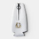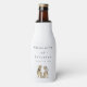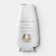 Welcome your guests with a roar of laughter and love with this funny dinosaur-themed wedding bottle cooler, featuring a charming watercolor illustration of a T-Rex bride and groom in soft brown and beige tones. Set against a sophisticated white background, this unique bottle cooler combines prehistoric charm with modern elegance.