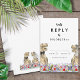 Bring fun and joy to your wedding day preparations with this Dinosaur themed wedding RSVP reply enclosure card with T-Rex bride and groom in a colourful prehistoric wildflower meadow. Modern whimsical typography calligraphy with easy to personalise templates. Unique Tyrannosaurus Rex bride and groom with watercolor summer floral art original artwork by artist Catherine Sweetman Ideal for the wedding day reception or rehearsal dinner. Matching wedding suite includes everything you will need on your fun wedding journey