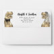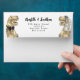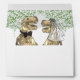 Fun Dinosaur themed wedding return address envelope with funny dinosaur bride and groom with watercolor botanical greenery to bring prehistoric Jurassic joy to your wedding day. Modern whimsical typography calligraphy with easy to personalise templates. Unique brown and green T-Rex bride and groom with watercolor eucalyptus foliage original artwork by artist Catherine Sweetman Ideal for the wedding day reception or rehearsal dinner. Matching wedding suite includes everything you will need on your fun wedding journey