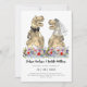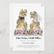 Delight you guests with this funny dinosaur themed wedding invitation with T-Rex bride and groom standing in a colourful wildflower meadow. Easy to personalise with the bride and grooms names, wedding date and all the details. Fun T-Rex bride and groom illustrations with modern whimsical typography script. Unique original artwork by artist Catherine Sweetman
