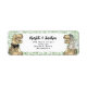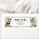 Dinosaur themed wedding return address label with funny dinosaur bride and groom with watercolor botanical greenery. A great way to bring prehistoric Jurassic joy to your wedding day. Modern whimsical typography with easy to personalise templates. Unique T-Rex bride and groom with watercolor eucalyptus foliage. original artwork by artist Catherine Sweetman Ideal for the wedding day reception or rehearsal dinner. Matching wedding suite includes everything you will need on your fun wedding journey