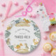 Modern and Clean Design, Cute Watercolor He's a Three-Rex Dinosaur Birthday Party Boy's 3rd Birthday Party Ilustrated Custom Paper Plates.