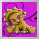 A cute baby triceratops with her head tilted smiling at you. Shown with a floral design on a purple background. Size of poster is 16" x 16".