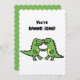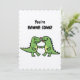 Dinosaur valentines greeting card features green dino couple in love with phrase You`re rawwr-some