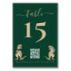 Bring a roar of personality to your reception with this whimsical dinosaur wedding personalised table number card featuring an adorable T-Rex bride and groom in soft brown and beige watercolor tones. Designed with a rich emerald dark green background and modern typography paired with elegant script, this card blends Jurassic fun with modern wedding style.