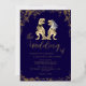 Fun Dinosaur Wedding Invitation navy blue and Gold Foil & Eucalyptus Design