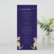 Funny Dinosaur Wedding Menu navy blue and white with T-Rex Bride & Groom Custom Jurassic-Themed dino wedding menu