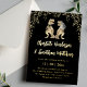 Funny Dinosaur theme Black and gold foil Wedding Invitation T-Rex Bride and Groom Modern Jungle Theme