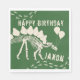 This Stegosaurus is ready to party!  Dinosaur skeleton with balloons and foot prints personalised birthday napkins feature customisable name and background colour.
