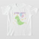 Cute dinosaur wearing a crown and carrying festive balloons, all in soft pastel colours.