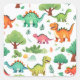 Dinosaurs and trees pattern white square sticker