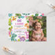 Invite friends and family to a dino-mite celebration with this adorable dinosaur-themed 1st birthday photo invitation! Featuring a sweet baby girl surrounded by cute, pastel-coloured dinosaurs, tropical leaves, and playful confetti, this design adds a fun prehistoric twist. The invitation highlights a special photo of the birthday girl. Perfect for setting the tone for a memorable first birthday bash filled with love, laughter, and dino-sized fun.