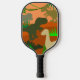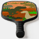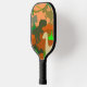 This pickleball paddle has a children’s design of dinosaurs in an atmosphere of plants and vines.