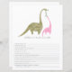 Dinosaur neutral baby shower theme children's book scramble game featuring illustration of mama and baby green and pink dinosaurs.