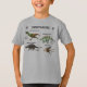 7 dinosaurs on this fantastic t-shirt designed by a 3-yr old boy. All these favourite dinosaurs include pictures and measurements.