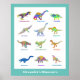 12 watercolor Dinosaurs in colorful psychedelic bright colors with their dino names, the perfect educational design for the child who loves dinosaurs. Teal boarder with personalized name plate. This fun palaeontology pattern includes all the prehistoric jurassic era favorites including T. rex or tyrannosaurus, velociraptors, brachiosaurus, brontosaurus, stegosaurus, the flying pterodactyl, triceratops, spinosaurus, ankylosaurus, plesiosaurs, parasaurolophus and pachycephalosaurus a fun spelling challenge for any child.