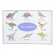 Add a Childs name to personalise this colourful dinosaur with names periwinkle pillow case and create a fun Jurassic dino bedroom. The perfect palaeontology educational gift for the girl or boy who loves dinosaurs. Dino custom bedroom decor with 12 Dinosaurs in colourful psychedelic bright colours with their dinosaur names. This fun pattern includes all the prehistoric jurassic era favourites including T-rex or tyrannosaurus, velociraptor, brachiosaurus, brontosaurus, stegosaurus, the flying pterodactyl, triceratops, spinosaurus, ankylosaurus, plesiosaurs, parasaurolophus and pachycephalosaurus a fun spelling challenge for any child. Original artwork by artist Catherine Sweetman