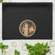 16” x 24” kitchen towel with an ancient black and gold image, on both ends, of Dionysus, god of wine and wine making and ritual madness, and the satyrs on black.