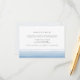 Elegant watercolor wedding reception enclosure cards feature an ombre gradient dip dye effect at the bottom in airy sky blue. Personalise with your reception details, timing, venue and address in dark charcoal grey block and script typography. Reception insert cards reverse to a subtle diamond lattice pattern in pale blue and white. Designed to coordinate with our Dip Dye wedding invitation collection in Sky.