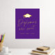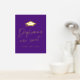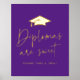 Modern graduation party sign featuring an illustration of a gold foil graduation cap at the top with "Diplomas are sweet" in a handwritten gold foil script on a purple background. Personalise the purple and gold foil graduation sign with your custom text (currently shown with "please take a treat"). The foil graduation party sign is perfect for displaying on a table with dessert or candy graduation party favours for your guests.