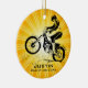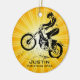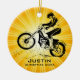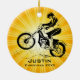 Dirt Bike Rider Ornament on a gold starburst background. All text customisable, front and back!