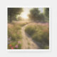 Dirt road in a summer wildflower field with a sunlit dreamy effect