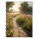 Dirt road in a summer wildflower field with a sunlit dreamy effect