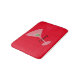 This rug is just as pictured! Vibrant Red and very soft material, nice to step in out of the tub! Matches my set of accessories and shower curtain! A must have to add some whimsy to your bathroom! Very nice, vibrant and clear print! Beautiful!