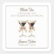 Dirty Thirty 30th Birthday Party Espresso Cocktail Square Sticker for her features a modern design in brown, beige, and white with a charming watercolor illustration of two espresso martini glasses adorned with bows. A mix of script, serif, and sans serif fonts creates a stylish typography layout, with the playful theme "Dirty Thirty" as the centerpiece.