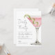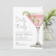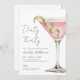 On the right side, a watercolor pink cosmo martini adds a cute pop of color, complete with a lime twist floating inside the glass. The vertical layout keeps everything clean and simple, with the party details arranged in an easy mix of serif and script fonts.