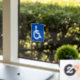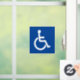 Disability handicapped wheelchair sign window cling. Removable blue square decal for disabled person. This decal is non sticky, it's not a sticker. Custom template logo design and colours. Handy for reserved areas. Available in different sizes. Use this universal symbol in special places like toilet, bathroom, public restroom, parking, entrance, entry, shop access, store, corporate office, restaurant and more. Custom warning notice. Add text optionally.