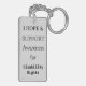 Awareness ribbon angel keychain features the art of a silver awareness angel painting. The art side notes "Disability Rights Awareness" and the reverse side states "I Hope & Support Awareness for Disability Rights!" Add your own custom words for personalised angel art cause awareness custom charm key chains! You can also remove the text for an art only angel pendant key chain. The silver awareness angel ribbon painting art keychains can be customised with personalised messages to make great awareness cause art key chains for fundraisers, awareness gifts, or other special events. Give this angel art keychain charm as an awareness ribbon gift for any occasion.