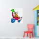 Cute cartoon whimsical illustration of a happy little disabled girl waving from her funky pink wheelchair. Easily customise and choose your own background colour or add text. Image available on various gifts and products.