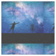 Silhouette of a disc golfer putting into the chains under a star-filled evening sky.
