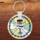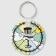 Personalized key chain for a couple. It has the disc golf theme and teal and yellow pop art background. Cute housewarming gift for newlyweds that like to disc golf.