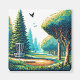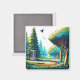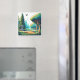 Disc golf magnet with a cool gaming vibes pixel art disc gold course in blue and green hues.