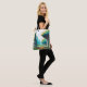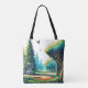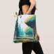 Disc golf tote bag with a cool gaming vibes pixel art disc gold course in blue and green hues.