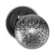 Various shades and tints of silver and grey simulate the mirrored surface of a disco ball