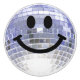 NOTE: This clock is not 3D. It is a 2D photographic image of a disco ball face face", happy, smile, smiling, "happy face face", "smiling face", cute, sweet, cheerful, hippie, hippy, 60s, sixties, smiler, disco, ball, "disco ball", silver, grey, blue, dance, dancing, party, partying, diva, diamond, sparkly, sparkles, glitter, glamour, club, clubbing, "night club", nightclub